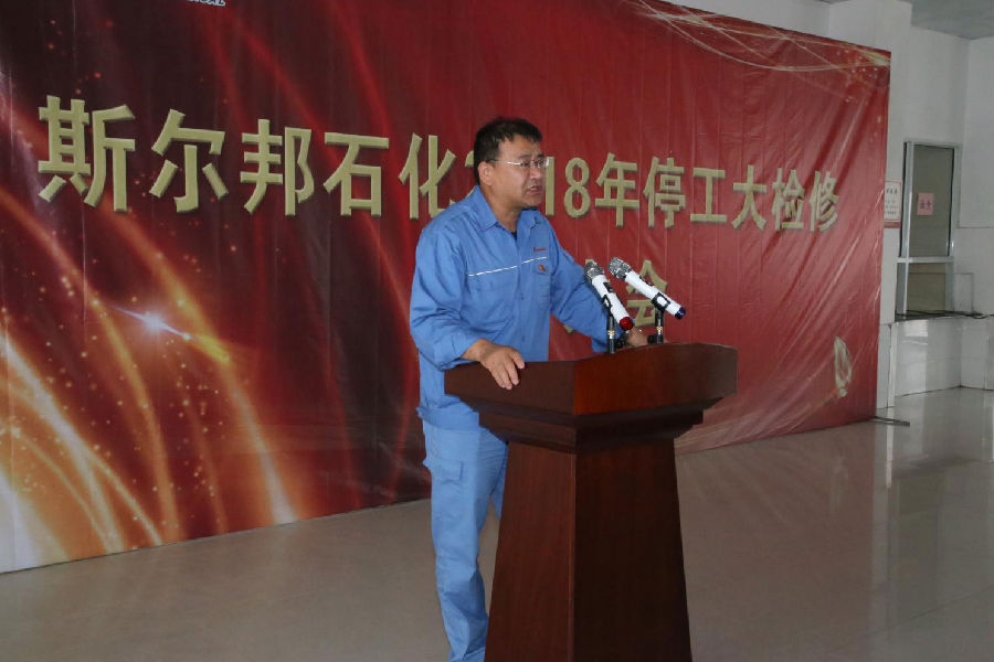 會(huì )議由斯爾邦石化安全總監郭榜立主持,斯爾邦石化設備副總經(jīng)理楊瑞平首先作檢修動(dòng)員報告,介紹了大檢修的總體情況、任務(wù)總量和整體目標,確立“安全、環(huán)保、優(yōu)質(zhì)、高效、科學(xué)、有序”的檢修方針,以及“零事故、零環(huán)保、零傷害”的安全環(huán)保目標,重點(diǎn)強調了檢修過(guò)程中的安全環(huán)保管理與監督、檢修質(zhì)量管理及檢修進(jìn)度管理等要求。